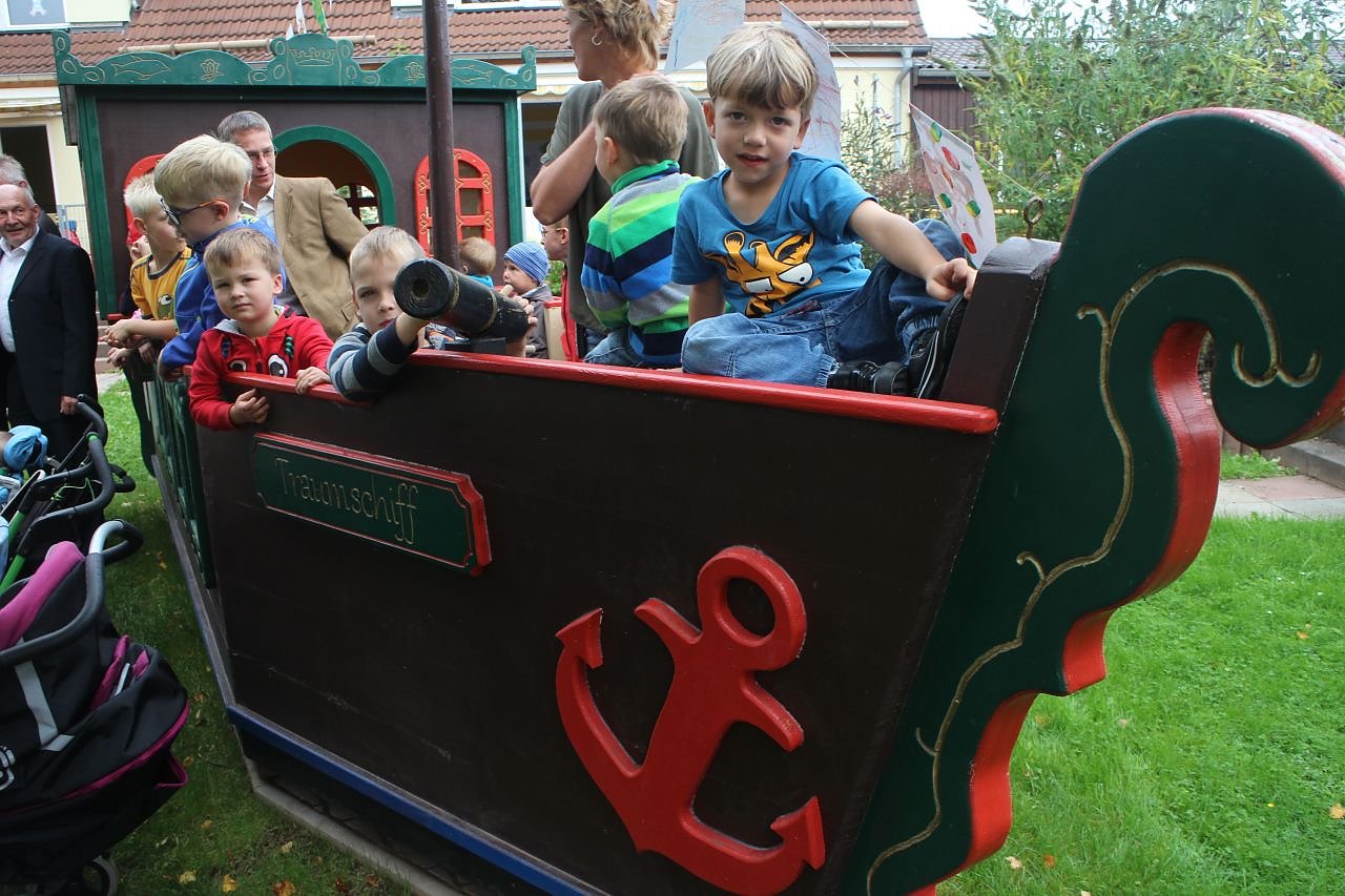 Auf den ersten Blick fällt auch dem Beobachter nicht auf, das der Traumzauberbaum kein durchschnittlicher Kindergarten ist. Es tobt und schreit und lacht wie auf jedem Spielplatz. Mit der Freigabe des neuen Spiel-Schiffs war es vielleicht nur ein wenig lauter und aufgeregter als an "normalen" Tagen.