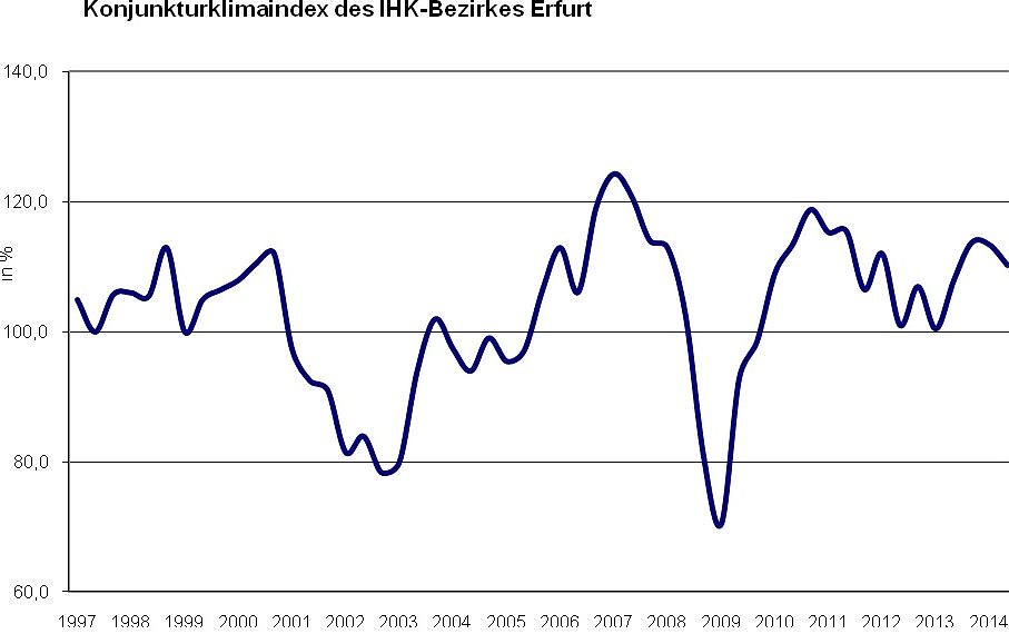 Im Ergebnis der jüngsten Konjunkturumfrage unter rund 800 Betrieben in Nord- und Mittelthüringen sinkt der Klimaindex zum zweiten Mal in Folge und erreicht nun 110 von 200 möglichen Prozentpunkten.