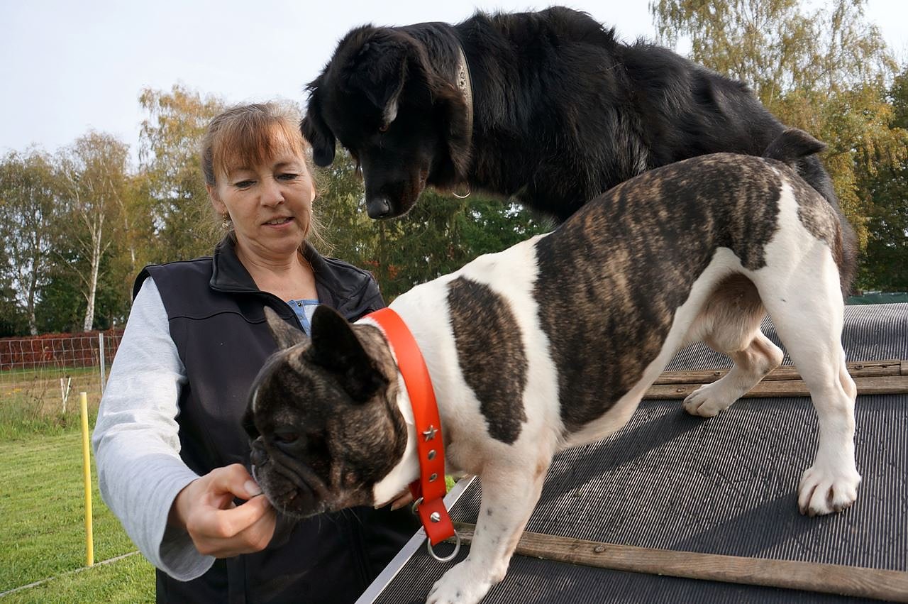 Andrea und Hartmut Gollnik haben nun als erste Hundetrainer im Landkreis diese Erlaubnis erhalten. Seit 2001vermitteln sie im Südharz unter anderem Agility und Hoopers Agility für Handicaphunde, große Hunde und Senioren, Apportieren, Treibball, bei der Welpen- und Junghundeerziehung und in Einzelstunden für Problemhunde. Oberste Priorität ist dabei: keine Gewalt. Vom Chihuahua bis zum Irischen Wolfshund, es gibt wohl keine Hunderasse, mit der die beiden Niedersachsen noch nicht trainiert haben.