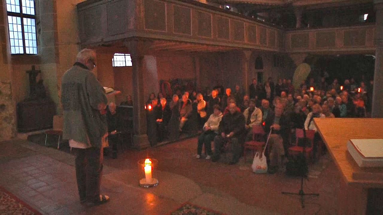 Wie vor einem Vierteljahrhundert, war es Peter Kube, damals Pfarrer in der Altendorfer Kirche, der die Worte sprach, die dem Anlass gerecht wurden. "Wir wollen uns erinnern an diesen Aufbruch hier in Nordhausen, Teil eines großen Aufbruchs, eines Bruchs mit eigenen Vergangenheiten in Biographien hinein. Zur Gesellschaftswende kommt die persönliche Revolution.", sprach Kube, "der Mensch erkennt sich hier und andernorts, im Land und über Grenzen hinaus. Über Grenzen gesteckt durch ein Gefüge von Macht und Abhängingkeit, von vorlaufendem und nacheilendem Gehorsam".