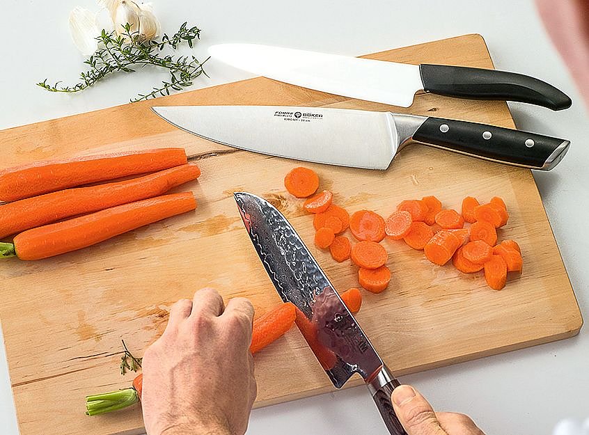 Drei Messer-Typen konkurrieren um die Gunst der Köche: klassische Kochmesser mit spitz zulaufender Klinge, Santokus japanischer Art mit kürzerer Klinge sowie Keramikmesser. Testsieger ist ein Santoku-Messer. Mit einer Gesamtnote von 1,6 schnitt es am besten ab, ist aber mit 199 Euro fast das teuerste Messer im Test. Gute Santoku-Messer gab es auch schon für 65 Euro.