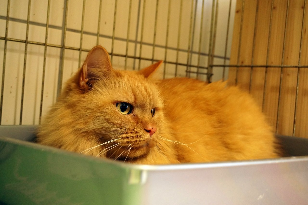 Roter Kater wartet im Tierheim