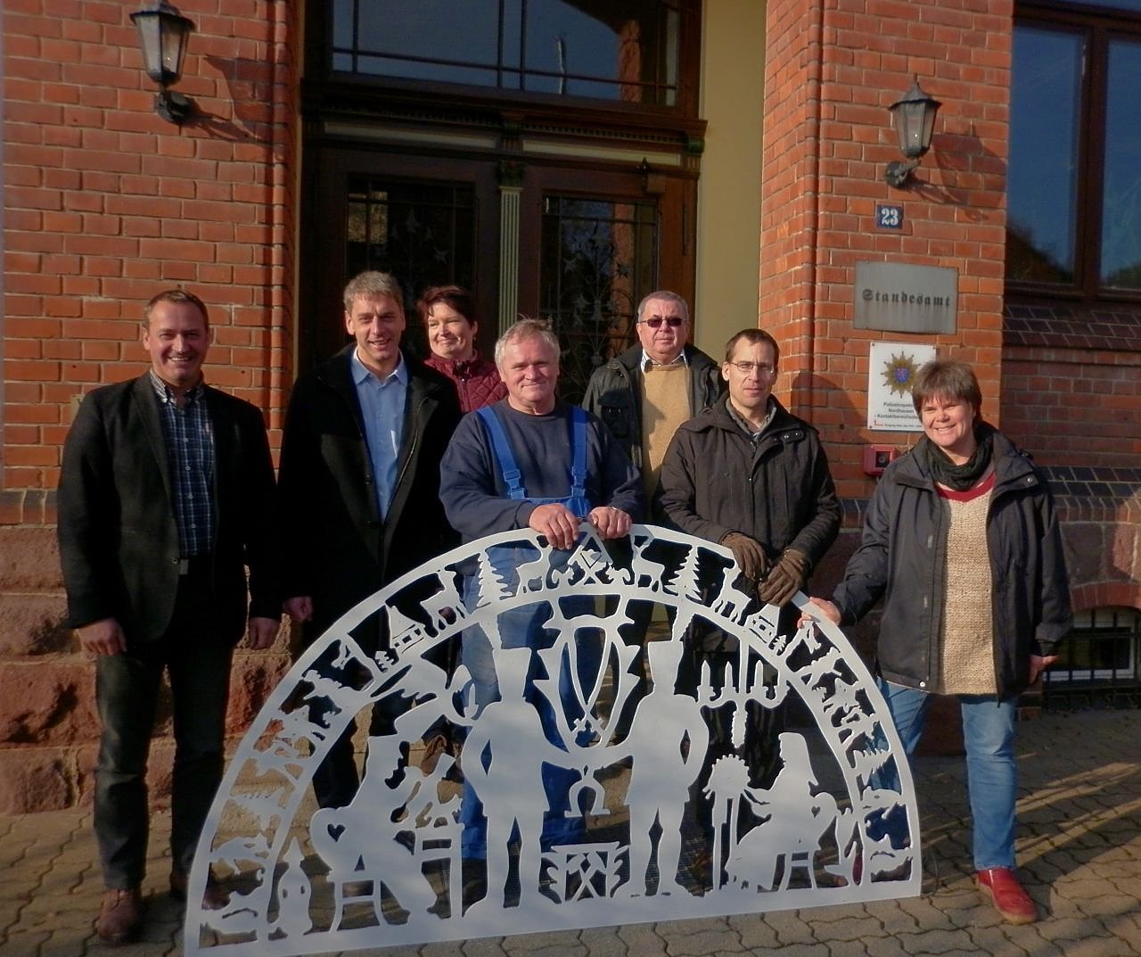 Herr Gründler -(Mitte) Mitglieder der UWL - (Unabhängige Wählerliste) Harztor, mit dem Schwibbogen, den wir aus Mitgliederspenden finanziert haben (Foto: Petra Gerlach)