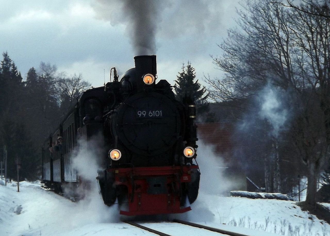 Die Interessengemeinschaft Harzer Schmalspurbahnen fährt mit dem Oldiezug und der beliebten 99 6101 durch den winterlichen Harz zum Brocken. Wer es nicht nur rustikal sondern besonders stilvoll mag, kann sich im Salonwagen bis auf den 1142 Meter hoch gelegenen Gipfel chauffieren lassen...