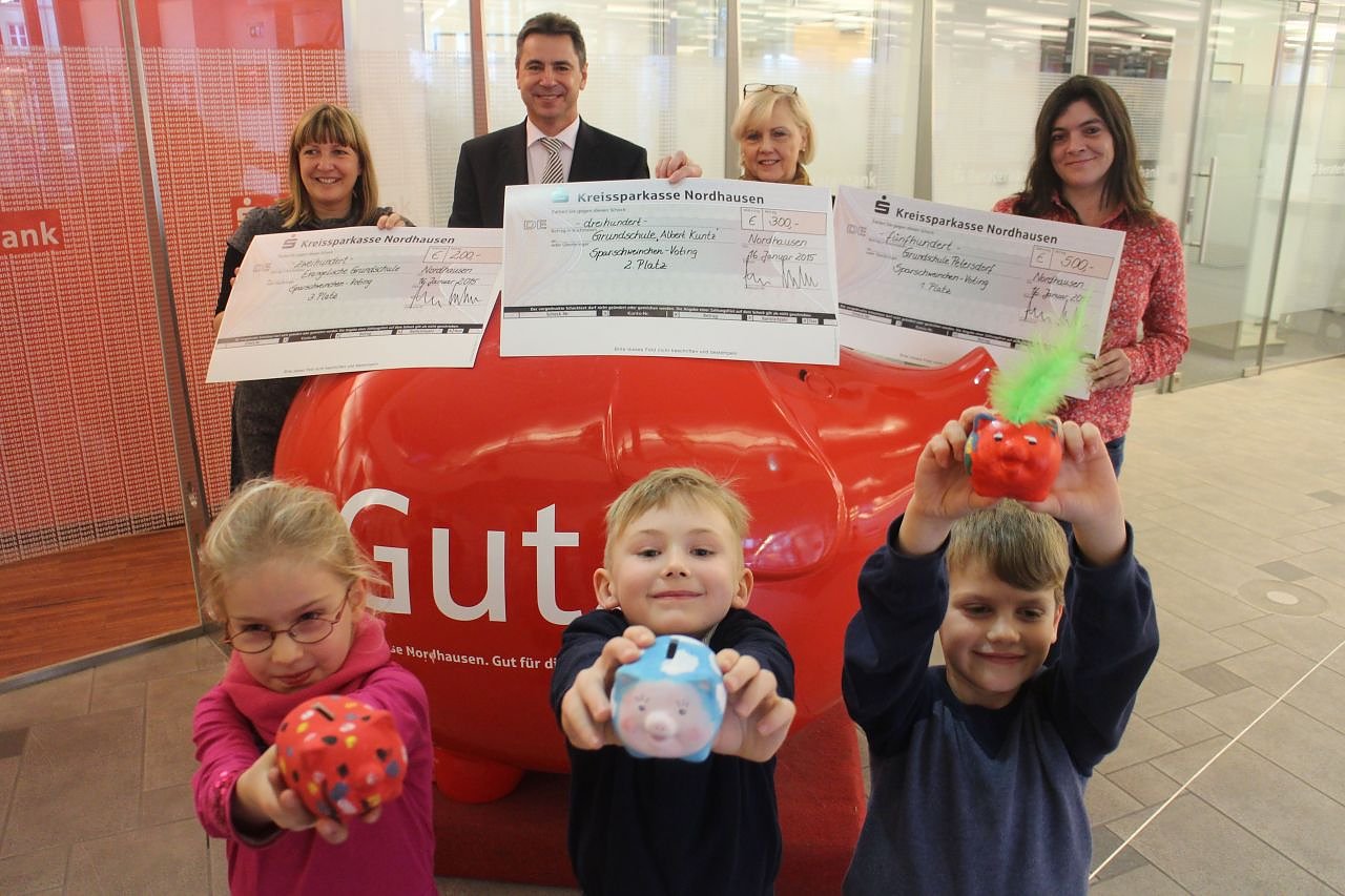 Zum Weltspartag waren alle 21 Sparschweinchen der Grundschulen in der Hauptstelle der Kreissparkasse in Nordhausen zu sehen und wurden auch im Internet gezeigt. "Das waren schon Hingucker", sagte der Leiter der Kreissparkasse, Wolfgang Asche, "viele Leute sind stehen geblieben und haben sich über die Farbenfrohen Sparschweinchen gefreut".