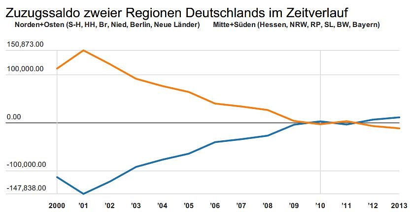 Jede Umzugsentscheidung wird individuell getroffen ohne Rücksicht auf die Entscheidung anderer. Im Zeitverlauf gibt es immer weniger Umzugsentscheidungen Richtung Mitte und Süden Deutschlands, erklärt Lutz Hafkemeyer, Geschäftsführer der Agentur. Für eine Beurteilung der zukünftigen Entwicklung sei somit lediglich der Trend entscheidend.