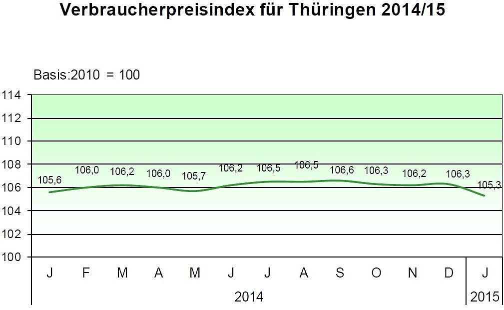 Binnen Monatsfrist sank der Verbraucherpreisindex nach Mitteilung des Thüringer Landesamtes für Statistik um durchschnittlich 0,9 Prozent und fiel auf einen Indexstand von 105,3 Prozent (Basis 2010=100). Im Jahresvergleich wiesen die Verbraucherpreise in Thüringen im Durchschnitt ein um 0,3 Prozent niedrigeres Niveau als im Vorjahr aus...