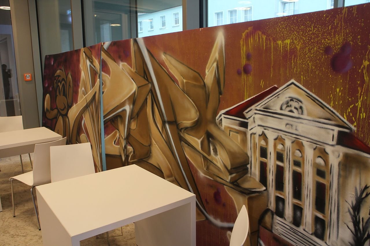 Die Graffiti Werke, die derzeit in der Nordhäuser Bibliothek zu sehen sind, werden demnächst versteigert (Foto: Angelo Glashagel)