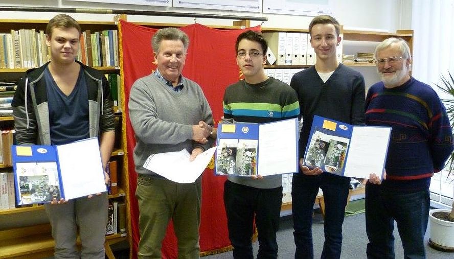 Hier sehen wir sie gemeinsam mit Vereinsfreund Heiner Voigt, der die Gymnasialschüler fachlich betreut und unterweist, bei der Übergabe des Fachgutachtens und der Bewertungsbögen zum Prozess der Erstellung ihrer Seminarfacharbeit.
