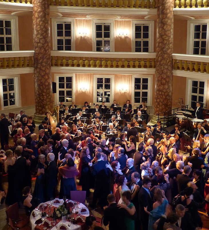 Im Moment ist der Caterer am Disponieren der Getränkemenge: für den Begrüßungsekt lässt sich die Menge leicht berechnen, die Lieferung hierfür ist – neben den anderen Getränken – schon in der Kühlung, etwas schwieriger ist es die benötigte Menge an den kostenfreien alkoholfreien Getränken einzuschätzen. Aber wenn das Programm so mitreißend wird, wie es die heißen Tanzrhythmen des gerade unter der Leitung von Generalmusikdirektor Markus L. Frank probenden Loh-Orchesters versprechen, wird das ein tanzintensiver Abend freut sich Tettenborn.