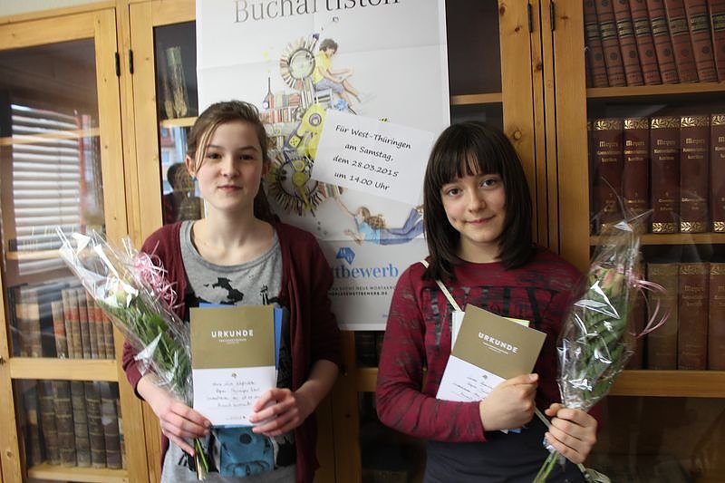 Die Gewinnerinnen des Bezirkssausscheids sind Anna Luise Wolfsteller Nordhausen vom Wilhelm von Humboldt Gymnasium Nordhausen und Leonie Reinhardt - Schwabhausen von der Arnoldi-Schule Gotha