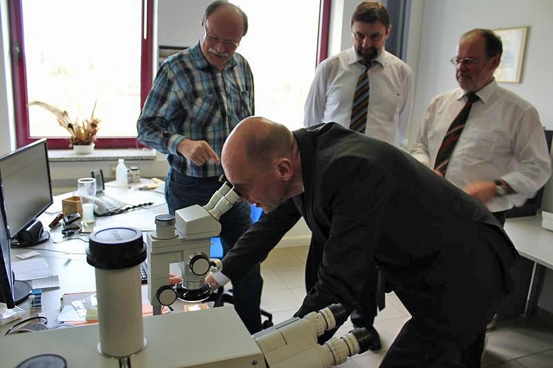 Auch das Thema Umweltanalytik interessierte den Minister und schaute er mal in die faszinierende Welt der Kristalle. Zur Frage der Wirtschaftlichkeit erhielt der Minister auch ein positives Echo. Wir haben noch nie rote Zahlen geschrieben, so die beiden Geschäftsführer, nur in einem Jahr gab es eine schwarze Null.