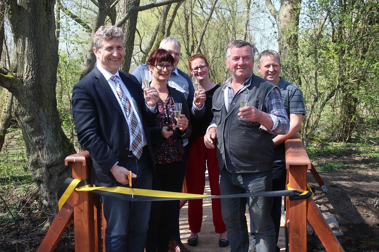 An der Salza kann wieder spaziert werden, und zwar ohne das man Gefahr läuft, sich nasse Füße zu holen. Oberbürgermeister Zeh, der Heimatverein Salza und die Fördermittelgeber des Vereins für Wirtschaftsentwicklung eröffneten heute die neue Fußgängerbrücke an der Quelle der Salza.