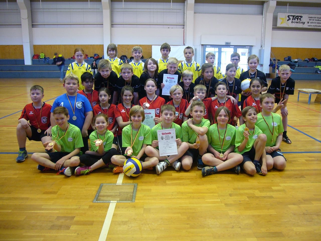 Dabei gab es viele spannende Spiele. Nach drei Siegen setzte sich die Heinz – Sielmann Grundschule Niedersachswerfen verdient als Sieger durch und die Spielerinnen und Spieler erhielten die Goldmedaillen.