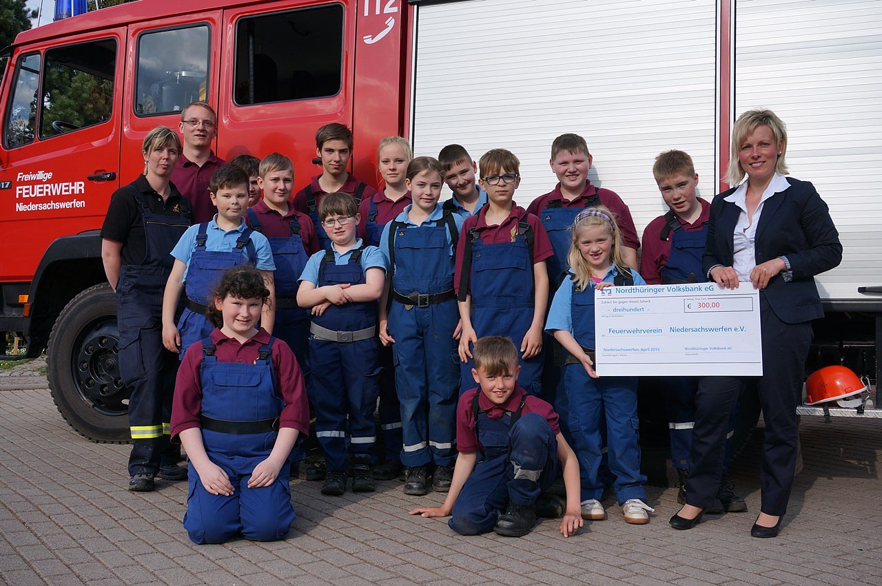 Die Jugendfeuerwehr in Niedersachswerfen feiert in diesen Tagen ihr 15jähriges Jubiläum. Aus diesem Anlass überreichte heute Nicole Meinhardt von der Nordthüringer Volksbank eine Spende...