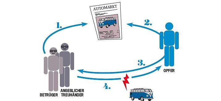Das Opfer wird meist durch den sehr niedrigen Preis aufmerksam, schreibt an die angegebene Mailadresse. Zur Tarnung werden oft fremde Telefonnummern benutzt. Im Falle des blauen VW-Busses nahmen die Unbekannten einfach die Faxnummer einer hessischen Anlagen- und Stahlbaufirma.