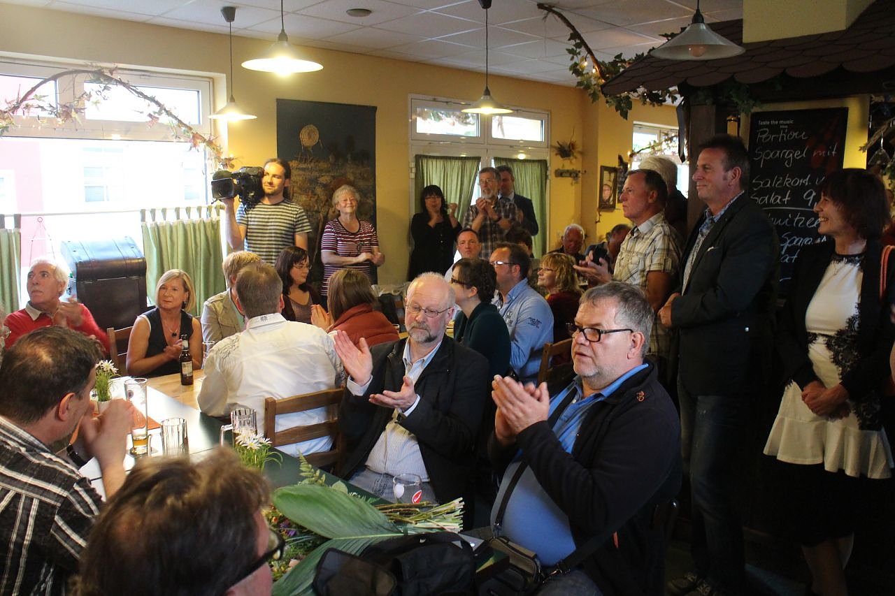 Optimismus zeigten auch Jendrickes Parteigenossen, die sich an diesem Wahlabend nicht in ihrer Parteizentrale eingefunden hatten, sondern zahlreich in die Gaststätte Alt-Nordhausen gekommen waren. Das deutliche Ergebnis lasse keinen Raum für Spekulation, meinte etwa Andreas Wieninger, Vorsitzender der SPD in der Stadt, "die SPD ist nach wie vor eine Größe, das hat das Ergebnis gezeigt, mit uns ist immer noch zu rechnen".