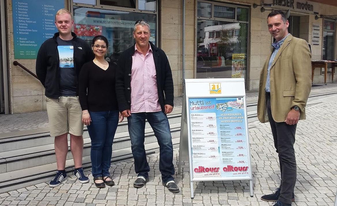 In der Fahrschule sitzt mit Silvio Hofmann ein weiterer Fahrlehrer neben den Schülerinnen und Schülern. Im Reisecenter Karnstedt am Nordhäuser Kornmarkt sind vier Mitarbeiter beschäftigt. Sabine Karnstedt arbeitet seit 1992 in dem Reisebüro.