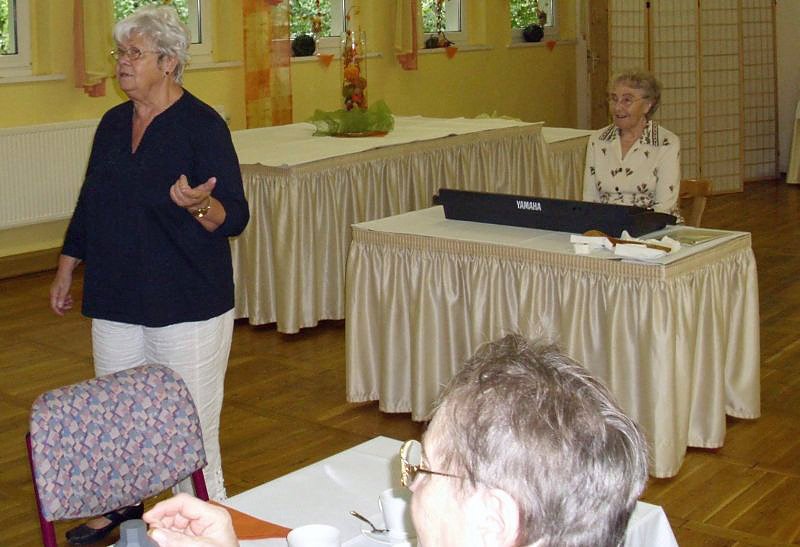 vorn Margot Hattenbacher, hinten Erika Schirmer - Text und Melodie "Kleine weiße Friedenstaube" beim Herbstfest am 5.10.2011 beim WB 4 der VS in Sondershausen