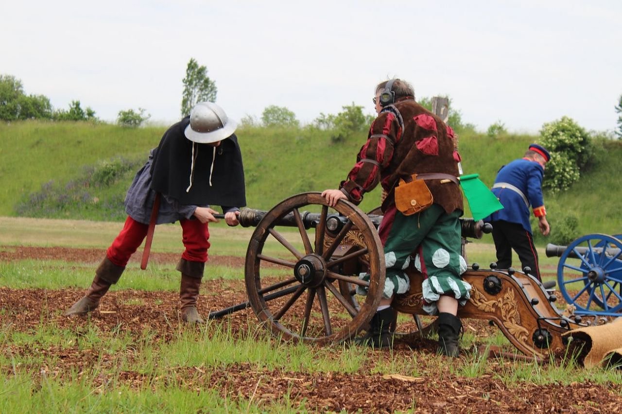 Aber nicht nur der Wettkampf ist von Interesse und man sieht, es wird auch getroffen. Ein buntes Bild bietet sich auch im Feldlager. Landsknechte neben Preußen und Sachsen, Uniformen der Befreiungskriege, Virginia- Milizen, die Leibgarde August des Starken der Kaiserlichen Artillerie und viele mehr.