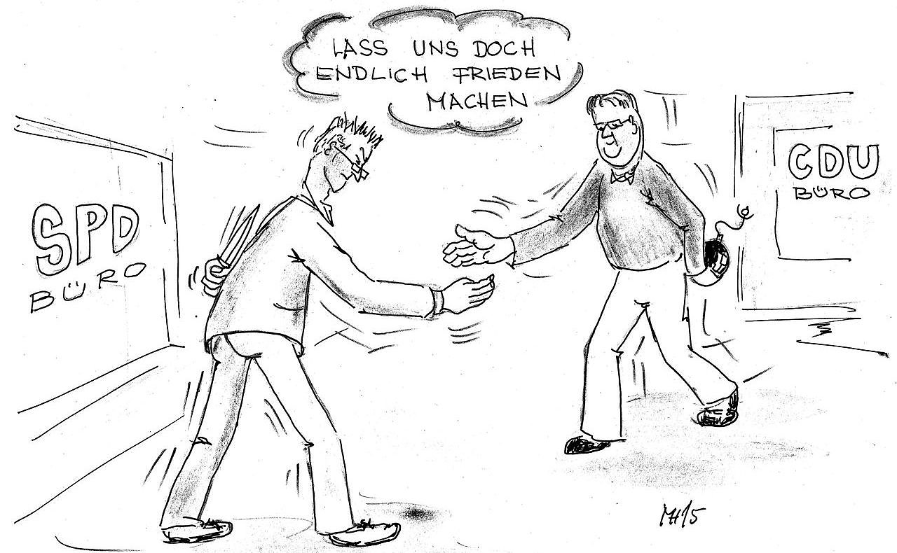 Er will nicht enden - der Zoff zwischen der CDU und der SPD. Jetzt macht seit Tagen das Wort "Diffamierung" die Runde. Anlass genug, für nnz-Karikaturist Martin Höfer wieder einmal zur Zeichenfeder zu greifen...