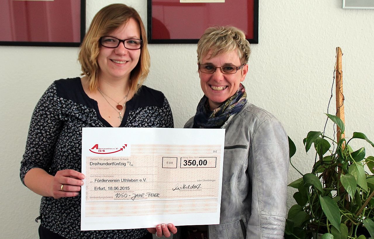 Katja Mitteldorf, kulturpolitische Sprecherin der Fraktion Die LINKE im Thüringer Landtag, sagte bei der Übergabe eines Schecks der Alternative 54 in Höhe von 350 Euro an den Förderverein Uthleben: