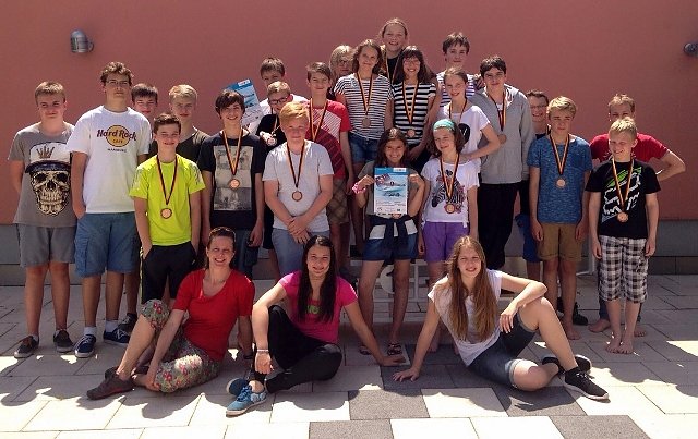 Sowohl die 6x25m Beinschlagstaffel mit 3:10,14min und die 4x25m Brust als auch die 6x25m Koordinationsstaffel und die Zeitgutschrift nach den 10min Mannschaftsschwimmen bestätigte sie als drittstärkste Mannschaft, vor dem Gymnasium Friedrich Schiller aus Weimar. Gold ging auch hier an das Sportgymnasium, Silber gewann das Albert-Schweitzer-Gymnasium Erfurt.