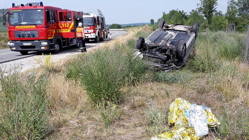 Ein Autofahrer hatte Glück im Unglück. Nach einem Reifenplatzer musste er gegenlenken und kam ins Schleudern. Zum Glück geriet er nicht in den Gegenverkehr, streifte aber die Leitplanke und hob ab und landete auf dem Dach.