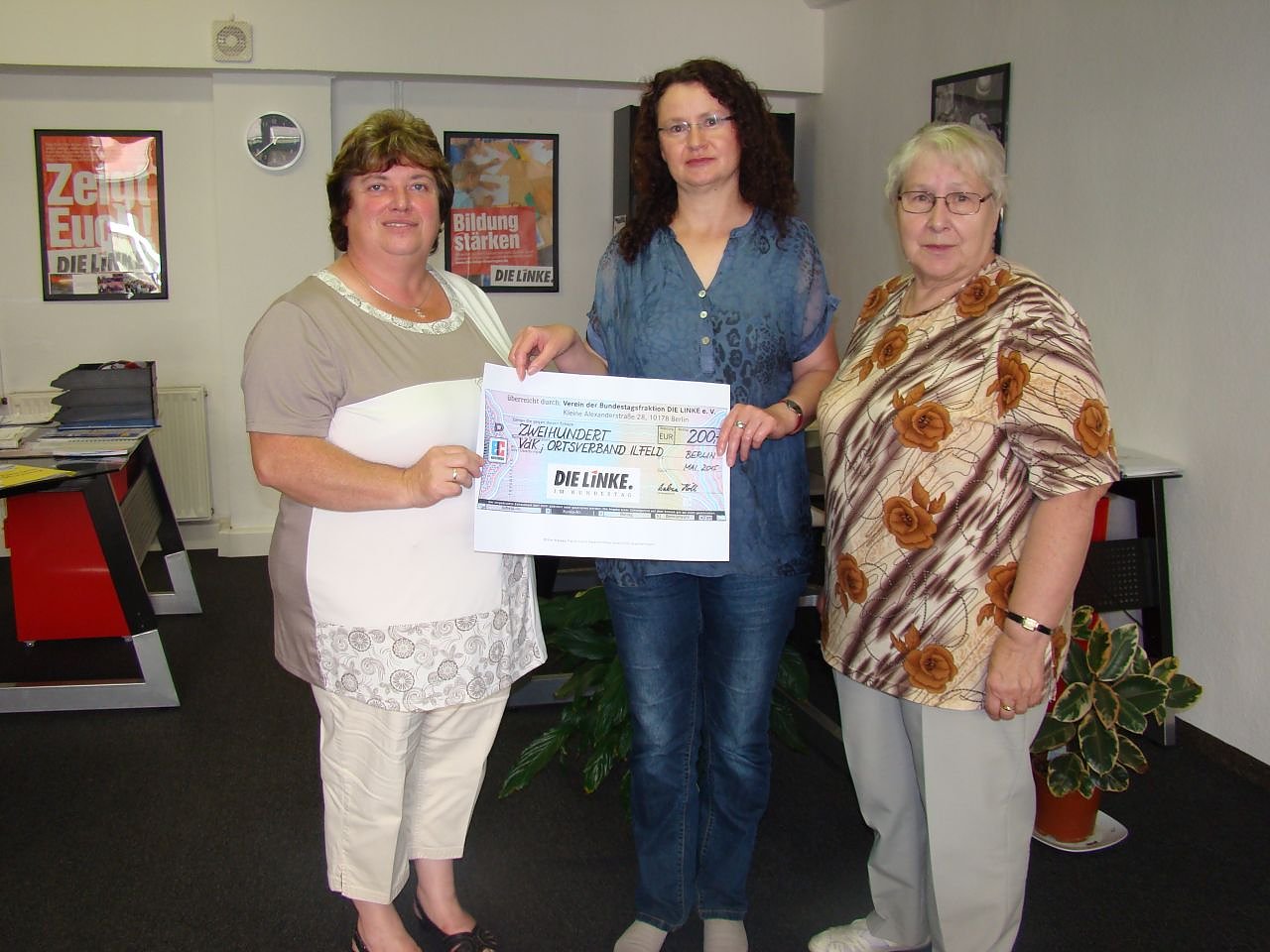 Während ihrer Bürgersprechstunde überreichte Sigrid Hupach, Mitglied des Deutschen Bundestages der Fraktion DIE LINKE am vergangenen Dienstag Spendenschecks des Vereins der Bundestagsfraktion DIE LINKE an die VdK- Ortsgruppe Ilfeld und an die Dritte Welt- Initiative Nordhausen...