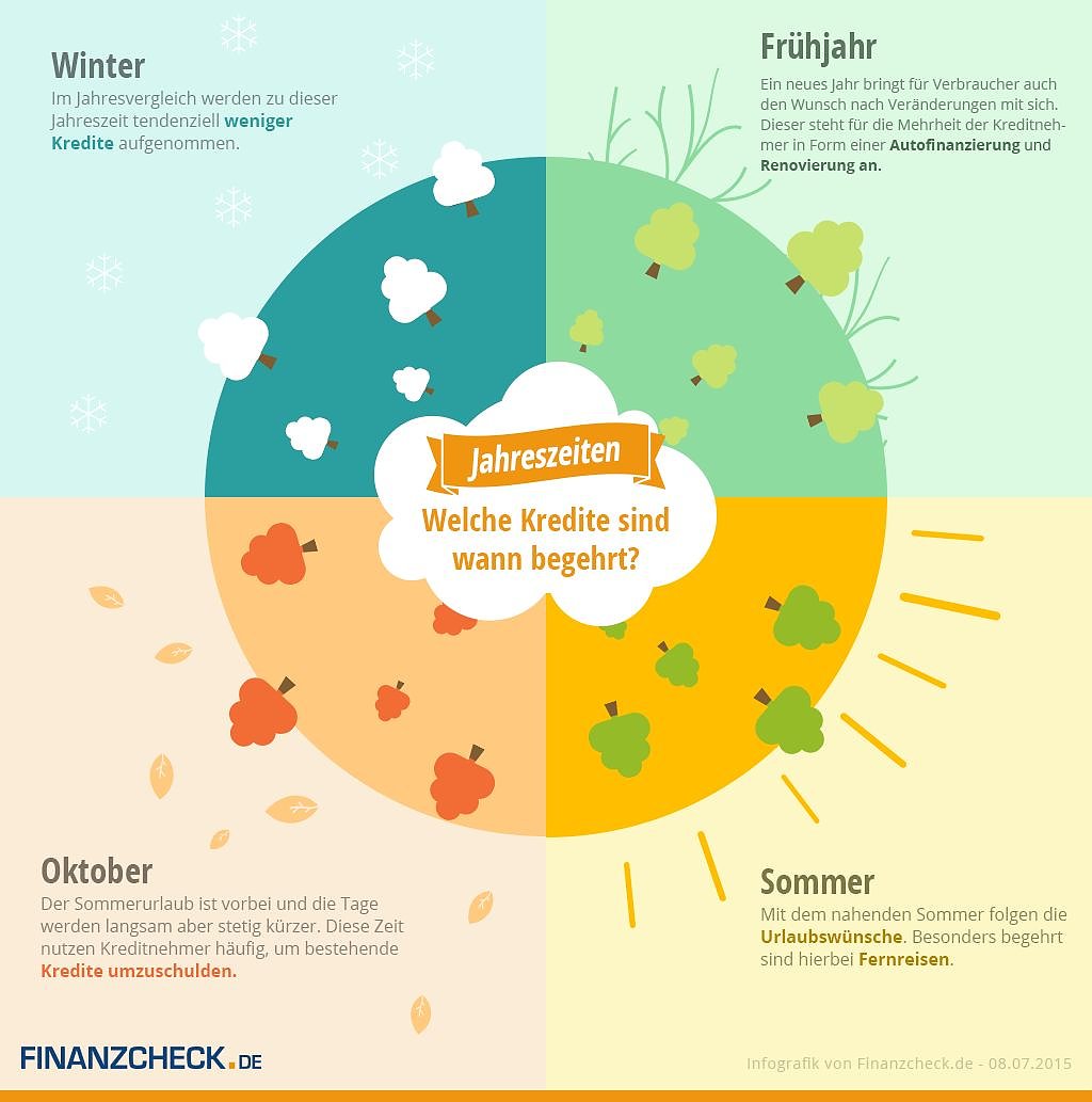 Zu welcher Jahreszeit nehmen Verbraucher in Deutschland bevorzugt Kredite auf? Und welcher Verwendungszweck ist wann besonders begehrt? Diesen Fragen ist das Finanzvergleichsportal FINANZCHECK.de nachgegangen...