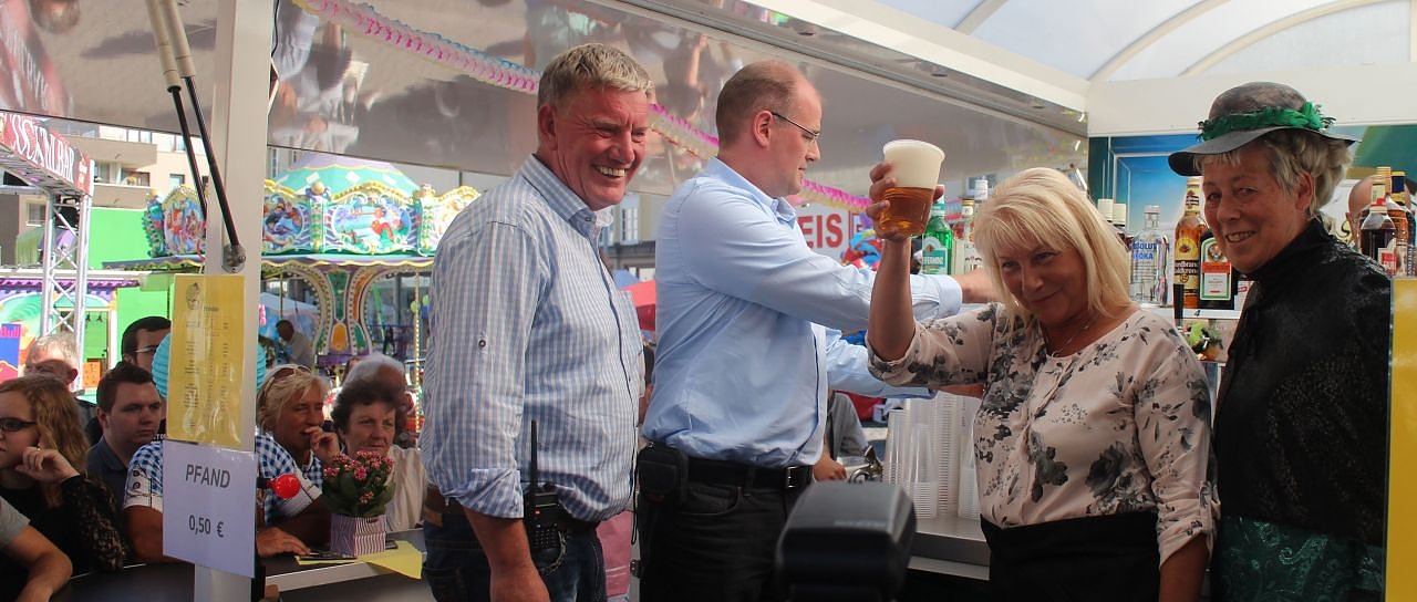 Dem schloss sich auch Landrat Jendricke an und gemeinsam schritt man schließlich zur Tat: zusammen mit den Alstadtoriginalen begannen Haase und Jendricke mit dem Bierausschank auf dem Fest.