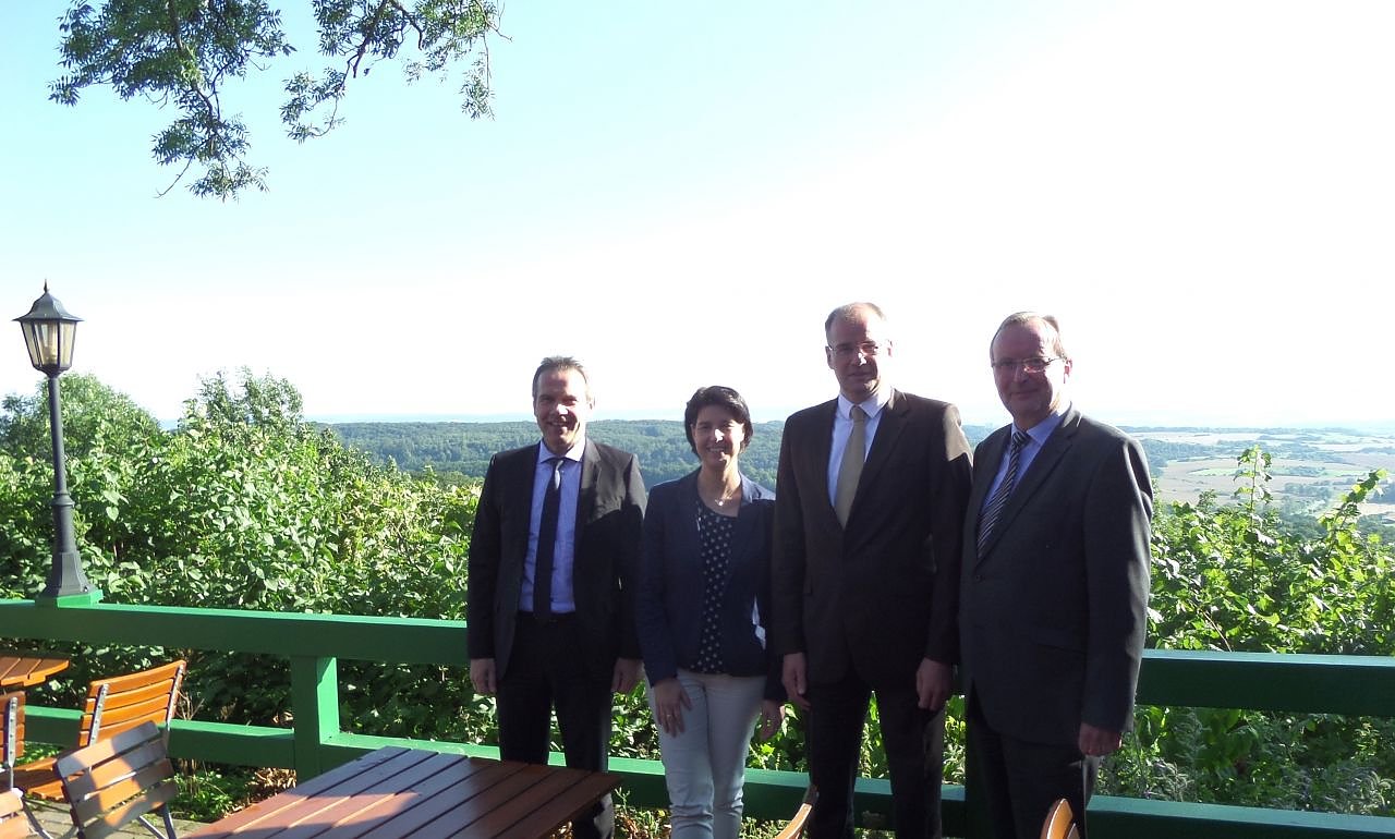 Georg Maier (SPD), Landrat Mattias Jendricke (SPD), Carola Schmidt und Matthias Wagener auf der Burgruine Hohenstein (Foto: Jessica Pieper)