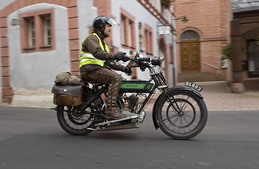 Autor: redMitveranstalter Timo Rohrwick auf seiner 770 ccm Royal Enfield aus dem Jahr 1914