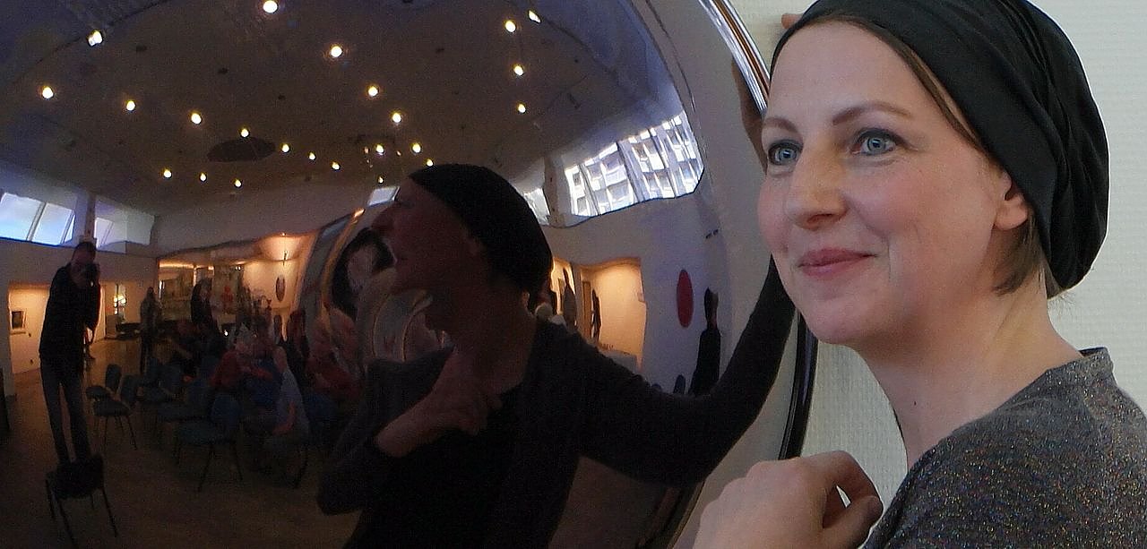 Andrea Flemming an einem der gezeigten Werke (Foto: nnz)