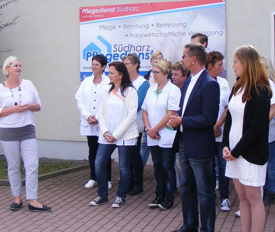 Der persönliche Kontakt noch vor dem ersten Beratungsgespräch ist gerade bei uns in den ländlichen Strukturen ganz besonders wichtig. Pflege ist Vertrauenssache und Vertrauen wächst oft über eine lange Zeit, wenn sich die Menschen schon viele Jahre kennen. Und dieses Vertrauen kann man auf dem Land einfach besser aufbauen, wenn man vor Ort ist. Zu den Gratulanten zur Eröffnung zählten Stefan Nüßle, 2. Beigeordneter im Landkreis Nordhausen, Stephan Klante, Bürgermeister der Landgemeinde Harztor, Dirk Erfurt, Bürgermeister der Gemeinde Neustadt, Holger Richter, Vorstandsmitglied des JugendSozialwerk Nordhausen sowie zahlreiche Vertreter aus Politik und dem Pflegebereich.