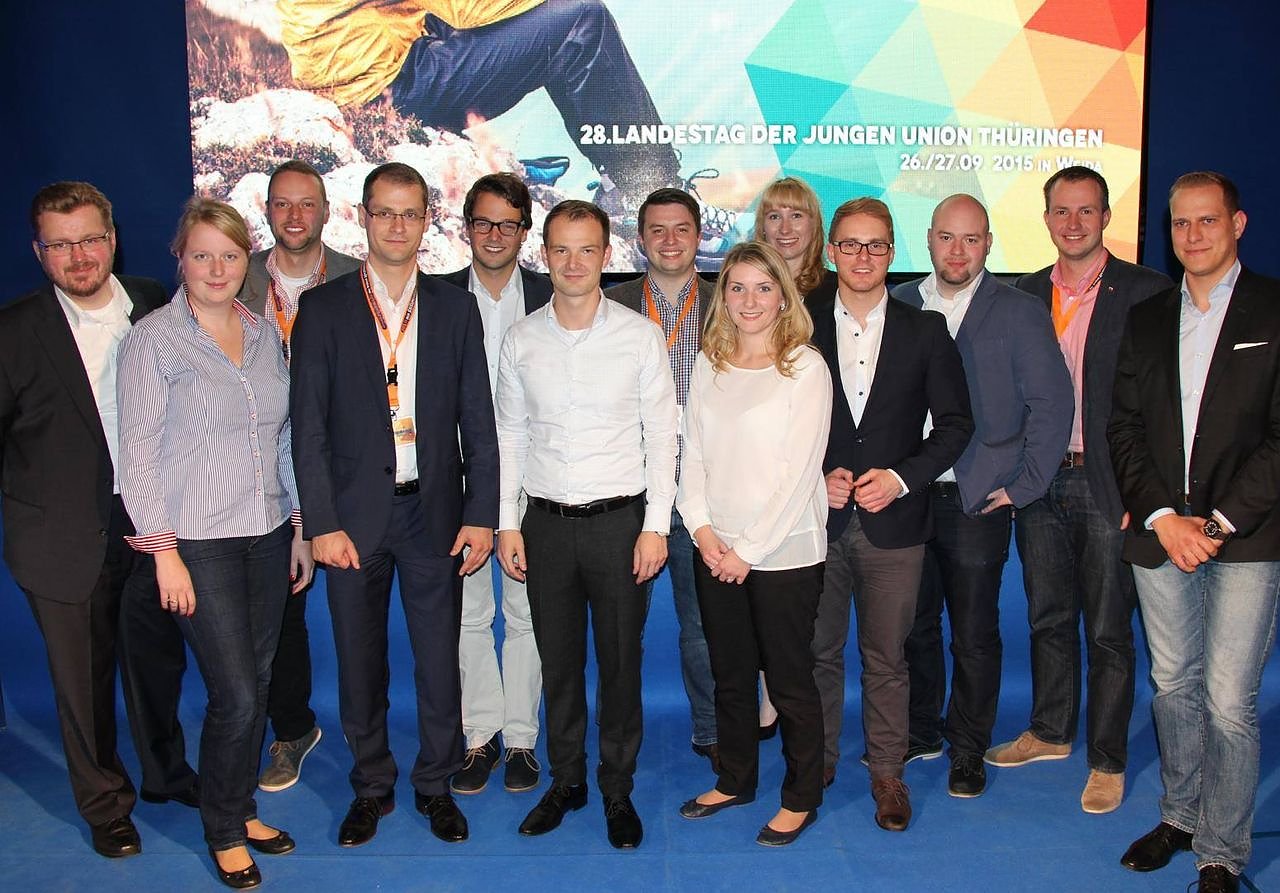 Der neue LandesvorstandAls Delegierte vor Ort brachten sich Claudia Krumbein, Johann Reinhardt, Vincent Eisfeld sowie Chris Schröder mit ein. Am ersten der zwei Sitzungstage stand neben Rednern wie Prof. Dr. Bernhardt Vogel, Mike Mohring auch die Wahl eines neuen JU Landesvorstand auf dem Programm.