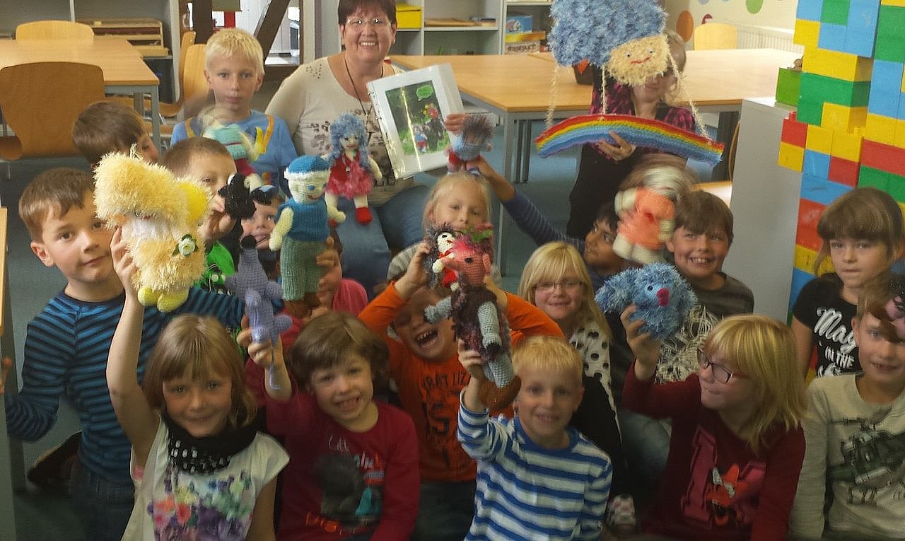 Ein besonderes Highlight war die Buchvorlesung des noch nicht veröffentlichten Kinderbuches Der Ring der Riesen. Die Autorin Elke Jödicke hat in Handarbeit die Hauptdarsteller des Buches gehäkelt. So stellte sich die Vorlesung noch viel anschaulicher und spannender dar. Die Kinder wurden von Frau Jödicke mit in die Geschichte einbezogen und waren dadurch noch viel mehr vertieft in ihre Erzählung. Da der Inhalt noch nicht vor der Veröffentlichung an die breite Masse weiter gegeben werden soll, wird in diesem Artikel nur ein kleiner Auszug wiedergegeben. Es gab einmal eine Familie in der waren alle Familienmitglieder traurig. Keiner wusste von ihnen warum das eigentlich so war.