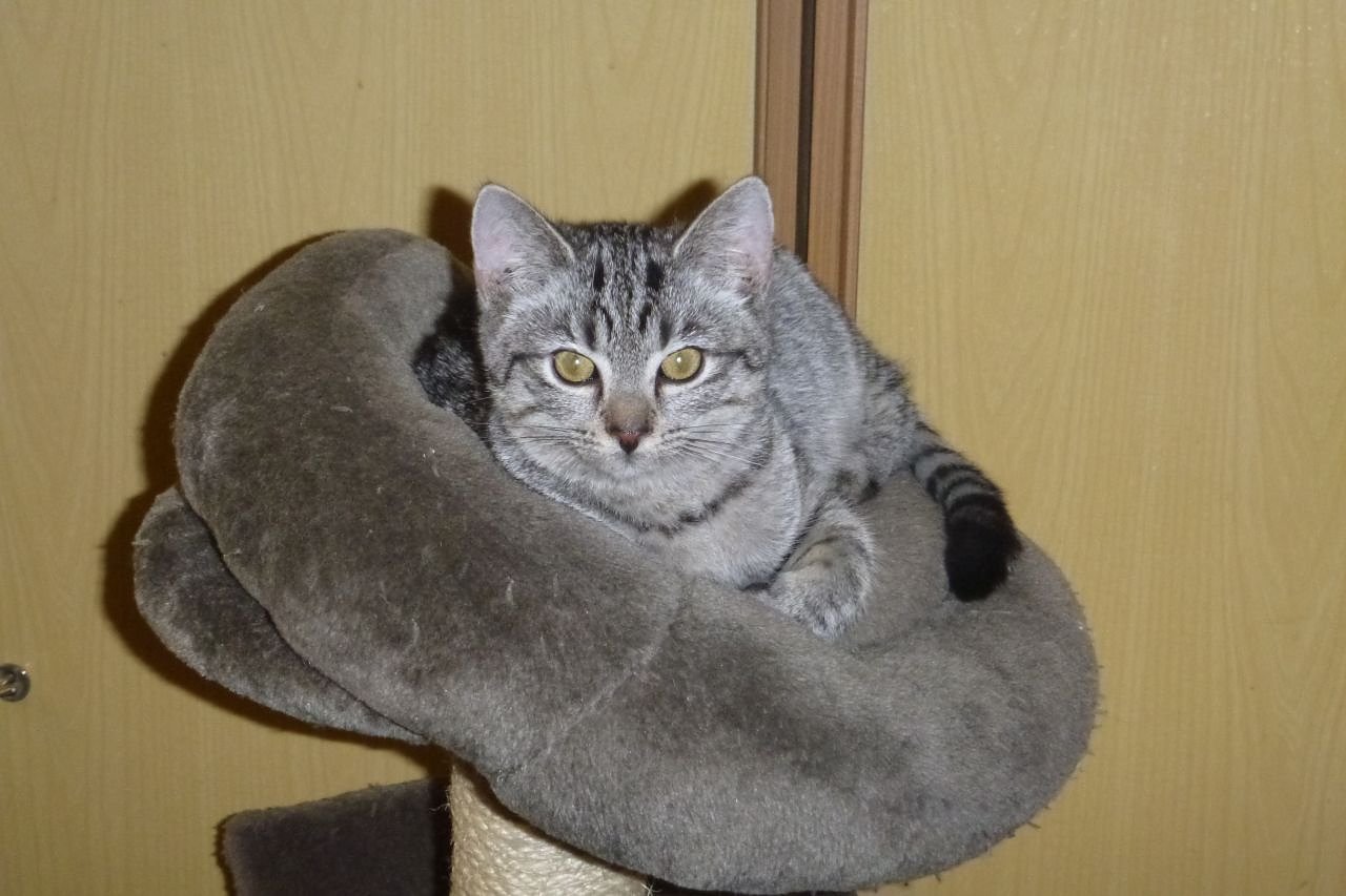 Die schmucke silbergrau getigerte Beci übernimmt hier die Mutterrolle. Sie ist sehr anhänglich u. verschmust. Auch Beci steht wieder nur stellvertretend für unsere vielen anderen Stubentiger.
