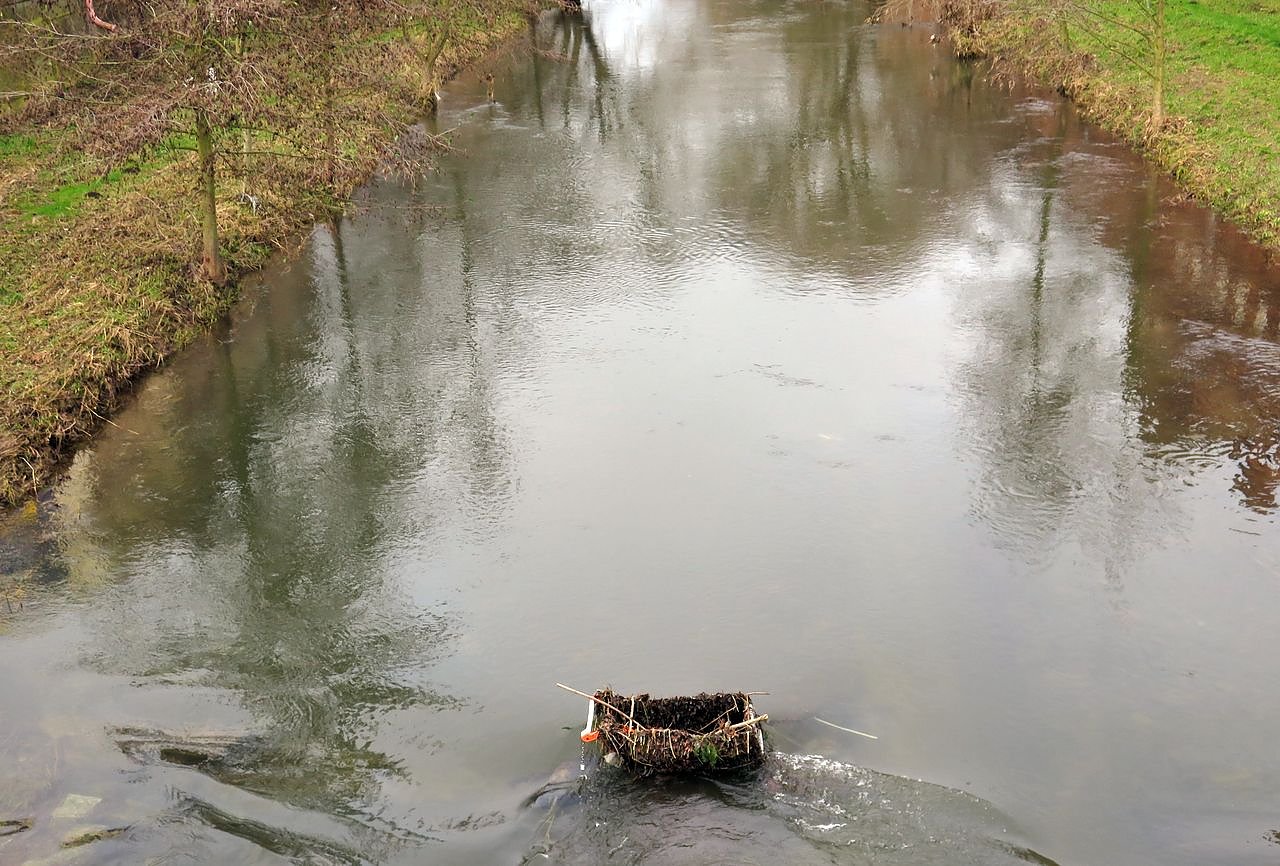 Als in der vergangenen Woche noch ein weitaus höherer Pegel gemessen wurde, da konnte der Betrachter kaum erahnen, um was für ein Fundstück es sich da handelte, an dem sich Zweige und Äste verhedderten. Jetzt es klar, es handelt sich um einen Einkaufswagen.