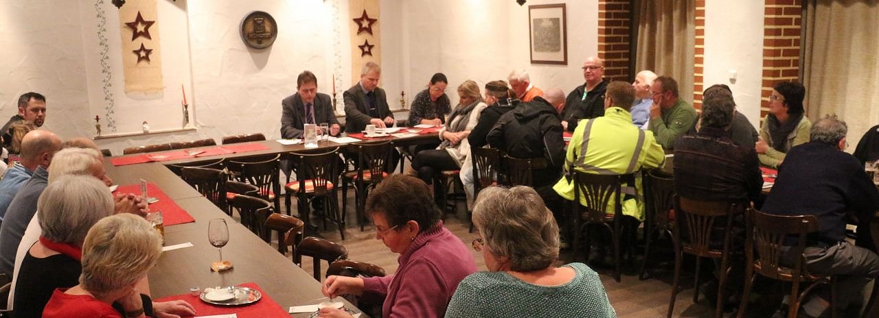 Zuerst aber einmal konnte Bürgermeister Matthias Ehrhold fünf Bürger der Einheitsgemeinde für ihr ehrenamtliches Engagement auszeichnen. Christa Zabel ist nicht nur im Sülzhayner Park aktiv sondern arbeitet auch fleißig an der Chronik des Ortes. Waltraud Ziem, denn Ellrichern auch bekannt als "Adele", wurde für ihre Bemühungen um die Museumsgestaltung geehrt, Jutta Gassmann für die Rentnerkaffeekränzchen in Appenrode. Manfred Wisse wurde von Ehrhold als "die gute Seele auf dem Sportplatz in Woffleben" bezeichnet und Heinz-Jürgen Kothe ist der "Organisator" in Werna, der auch selber mit anpackt.Nach Blumen, Urkunde und kleinem Präsent wird es ernst in der Gaststätte. Gerade am Jahresende ist es Zeit Bilanz zu ziehen und zu diesem Anlass waren auch mehr Leute als sonst üblich erschienen, zuletzt hatte man gerade mal zu sechst am Tisch gesessen.