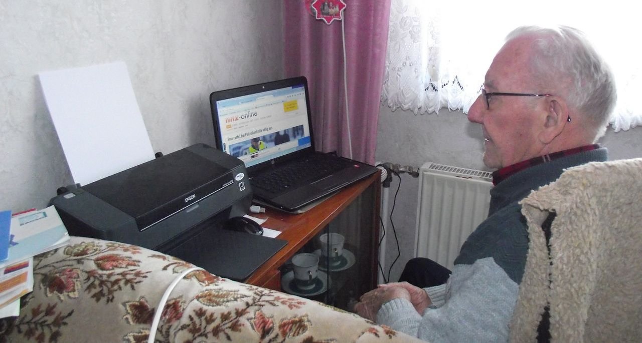Herbert Naumann vor dem Laptop in seiner Wohnung am Zuckerweg. Gern liest er die nnz.