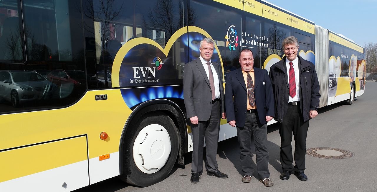 Es soll die Zusammenarbeit und die Außendarstellung der Unternehmen, zu welchen die Badehaus Nordhausen GmbH, die Energieversorgung Nordhausen GmbH, die Verkehrsbetriebe Nordhausen GmbH, die Neue Mitte GmbH, die Stadtwerke Nordhausen – Stadtwirtschaft GmbH, die Südharzwerke Nordhausen – Entsorgungsgesellschaft mbH, die Berufsbildungszentrum für den Straßenverkehr gGmbH und die Stadtwerke Nordhausen – Holding für Versorgung und Verkehr GmbH gehören, widerspiegeln. Zum Einsatz kommt der Bus der Stadtwerke-Nordhausen-Gruppe vorwiegend im Stadtverkehr und im Freigestellten Schülerverkehr.