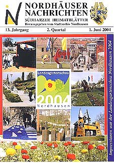 Die in Nordhausen und Umgebung bekannte Zeppelin-Brücke und ihre bewegte Geschichte bis zum 5. Dezember 2003 wird in Wort und Bild dargestellt. Nachdem bereits im Heft 1/2004 über die Geschichte des Caritas Grabdenkmals berichtet wurde, schließt sich im Heft 2/2004 der Bericht über die Restaurierungsarbeiten durch den Metallrestaurator Ulrich Sieblist an. In einem weiteren Beitrag erinnert Dr. Manfred Schröter an Ewa Vetulani-Belfour, die in einem Buch mit dem Titel In einem deutschen Städtchen-Erinnerungen einer polnischen Zwangsarbeiterin 1942-1945 ihre Erlebnisse während ihrer Zeit als Zwangsarbeiterin in Nordhäuser Betrieben niedergeschrieben hatte. Sie verstarb am 24. März 2004 im Alter von 80 Jahren in Baltimore /USA.