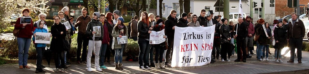 Die Kundgebung unter dem Motto Zirkus Ja! Aber bitte ohne Tiere richtete sich nicht explizit gegen den gastierenden Zirkus Charles Knie, sondern gegen die Entscheidung des Unternehmens, Tiere in die Vorstellung zu integrieren. Damit verbunden sind neben der mit physischer Gewalt verbundenen Dressur auch die prekären Bedingungen der Haltung und des Transports der Tiere reisender Zirkusbetriebe; Problematiken, über welche Angela Fricke (nnz-Beitrag vom 14. April 2016) vor einigen Tagen bereits berichtete.