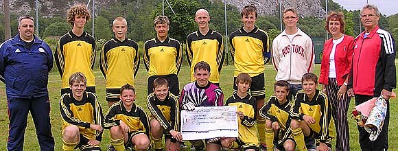 Die Förderung von Kunst, Kultur und Sport ist eine gute Tradition der Kreissparkasse Nordhausen. Auch der Sportverein SV Hannovera konnte sich am vergangenen Wochenende über eine Zuwendung freuen. Sparkassenfilialleiterin Regina Fuhrmann überreichte der Jugendmannschaft einen Scheck über 200 Euro. Heinz Schäfer nahm die Spende für seine Schützlinge gern entgegen, da die Mannschaft dringend neue Dresse benötigt.