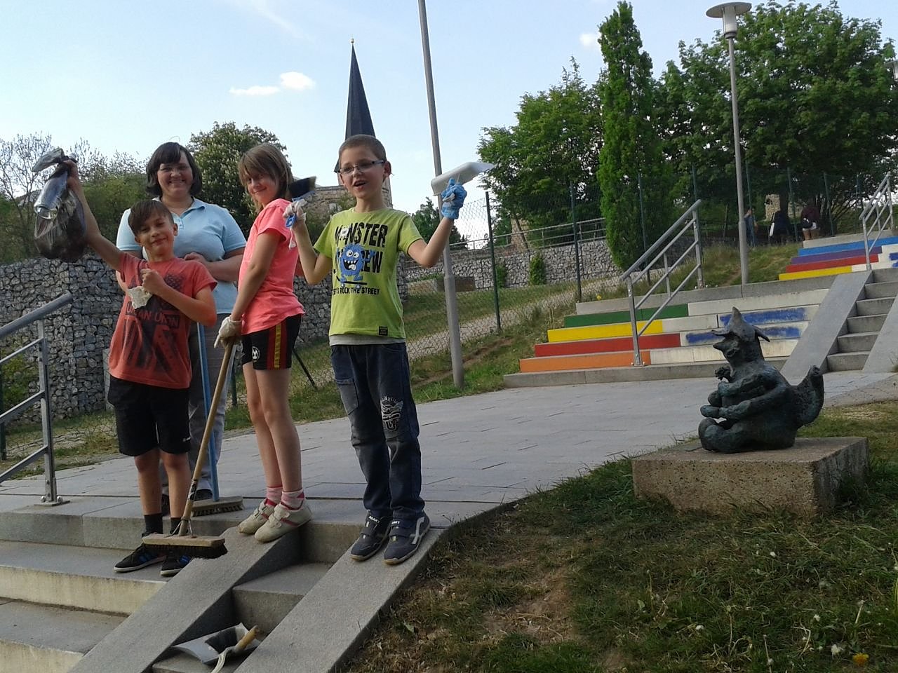 Bis zum Treppenfest im September werden auch die Farben an der Treppe wieder aufgefrischt trotz des Risikos, dass auch diesmal wieder Schmierfinken die Mühen der Kinder und Jugendlichen zu nichte machen. Zum Abschluss gab es für die Kinder heute ein Eis - das Papier landete natürlich im Papierkorb und nicht im Grünen.