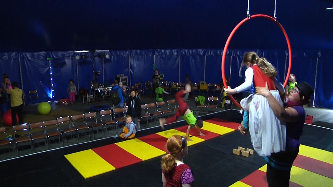 Erste Proben im neuen Zelt - die Zappelinis erkundeten gestern das neue Nordhäuser Zirkuszelt (Foto: Angelo Glashagel)
