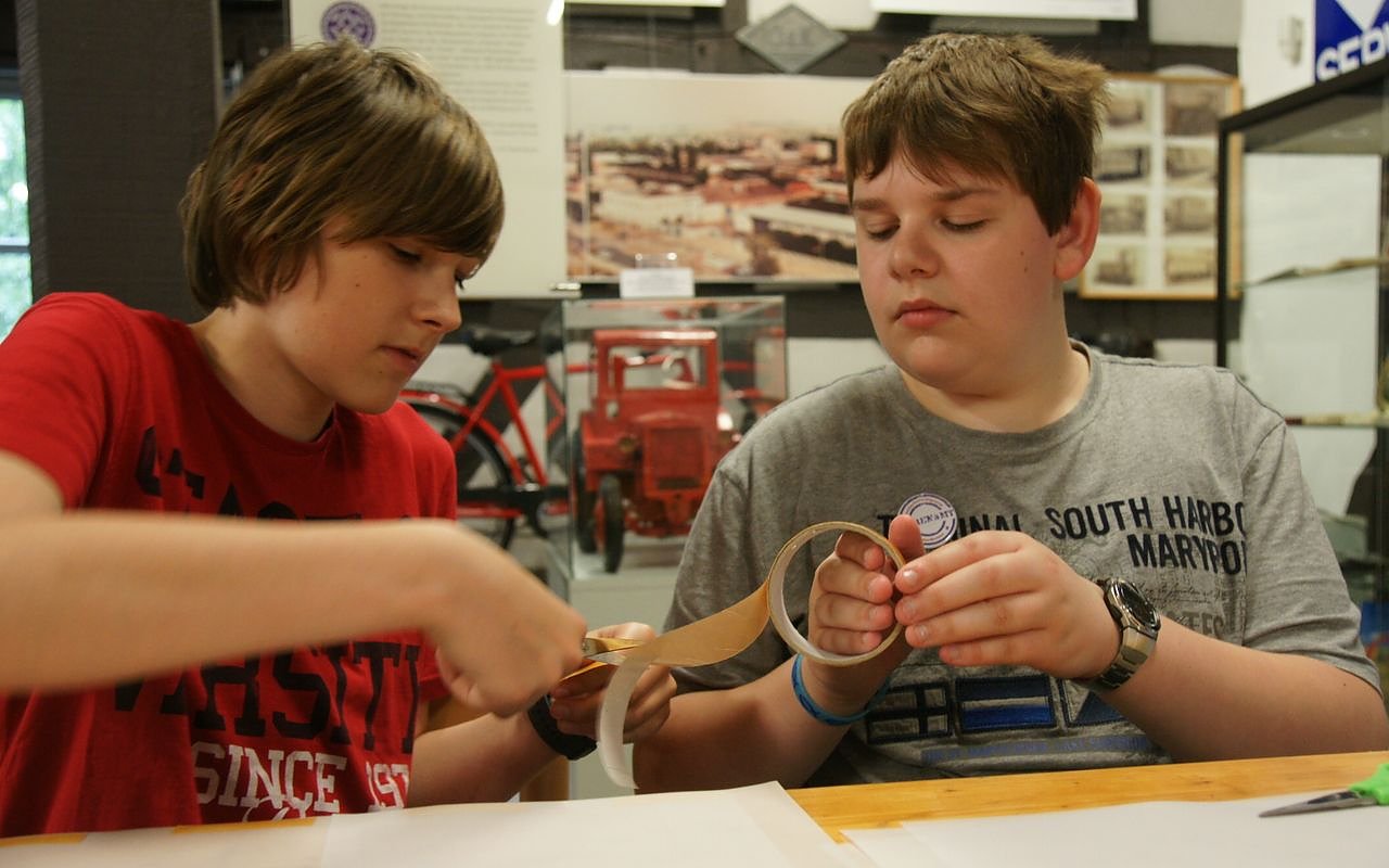 Lukas Lößner und Kai Hering fertigen im Museum Tabakspeicher Laternen an.