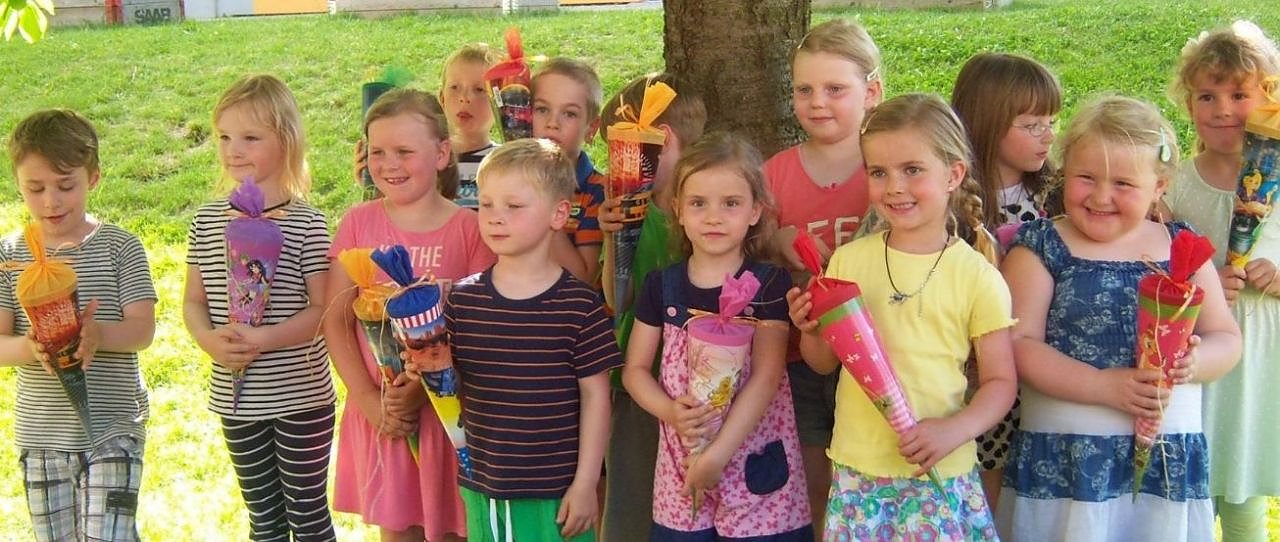 Wir haben viel gelernt im Kindergarten, deshalb können wir getrost in die Schule starten. Ihr gabt uns immer Vertrauen und Kraft, dank Euch haben wir alles so gut geschafft.