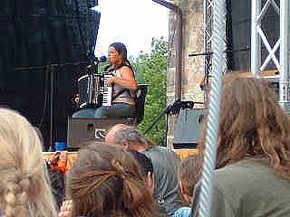 Der Rasen vor der großen Bühne wird an diesem Freitagabend vermutlich unter der Belastung gestöhnt haben, eine Nacht später hat er rhythmisch geschrieen. Zehn Toltekensöhne (oder elf?) aus Mexiko-City machten mit ihrem Latin-Ska-Punk-Rock die Bühne zu einer Außenstelle von Jugend trainiert für Olympia. Nach einigen kurzen Dehnübungen und Hüpfen auf der Stelle gingen die bekennenden Zappatisten dazu über, die eine Hälfte des Publikums zur Okkupation der anderen Hälfte des Platzes zu überreden. Mit großem Erfolg übrigens. Die (zwölf?) Musiker schonten sich nicht und absolvierten selbst einige Kilometer an diesem Abend. PANTEON ROCOCO sind mit ihrer Art lateinamerikanische Musik zu interpretieren mit Fug und Recht als die Urenkel des Buena Vista S.C. zu bezeichnen. Alle dreizehn (oder waren es doch vierzehn?) sind tolle Musiker!